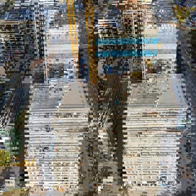 De ruwbouw van blok A is gereed, hier is het laatste staal gemonteerd en het beton gestort. De dakdekker is gestart met het waterdicht maken van de daken. Inmiddels is een start gemaakt met montage van de gevel, die compleet met kozijnen, glas en aluminium afwerking zonder steiger aan de betonnen vloeren worden gehangen. Een van de torenkranen wordt nog voor het nieuwe jaar afgebroken.