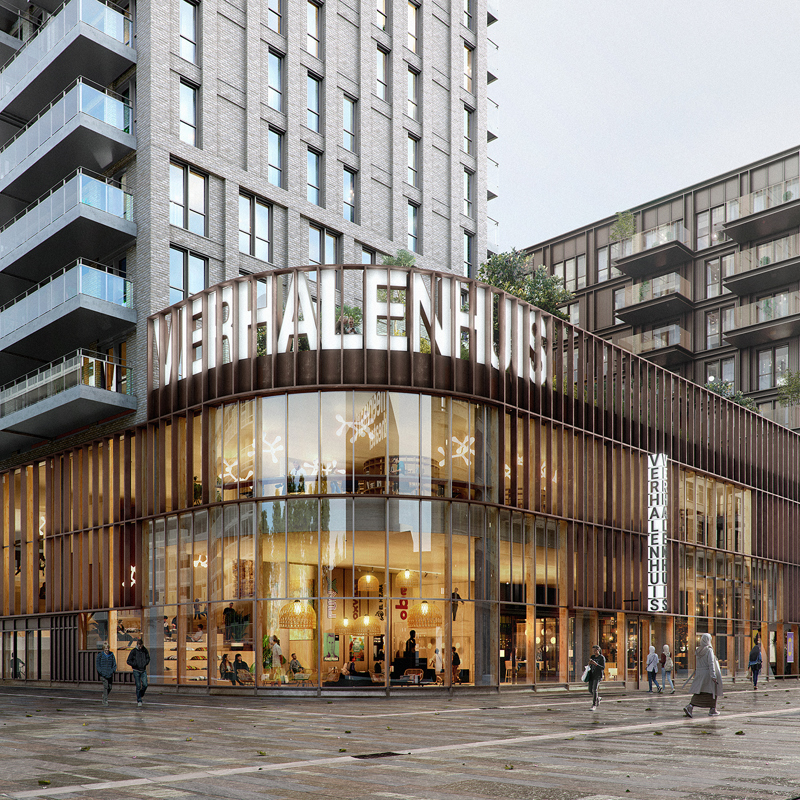 Op de begane grond komen winkels, kantoren en het kunst- en cultuurcentrum het Verhalenhuis. Het Verhalenhuis is een samenwerking tussen de openbare bibliotheek van Amsterdam, El Hizjra (centrum voor Arabische kunst en cultuur) , radiozender FunX en filmhuis Oxville. Het Verhalenhuis krijgt een breed en actief programma voor de buurt en wordt een open en toegankelijke ontmoetingsplek.