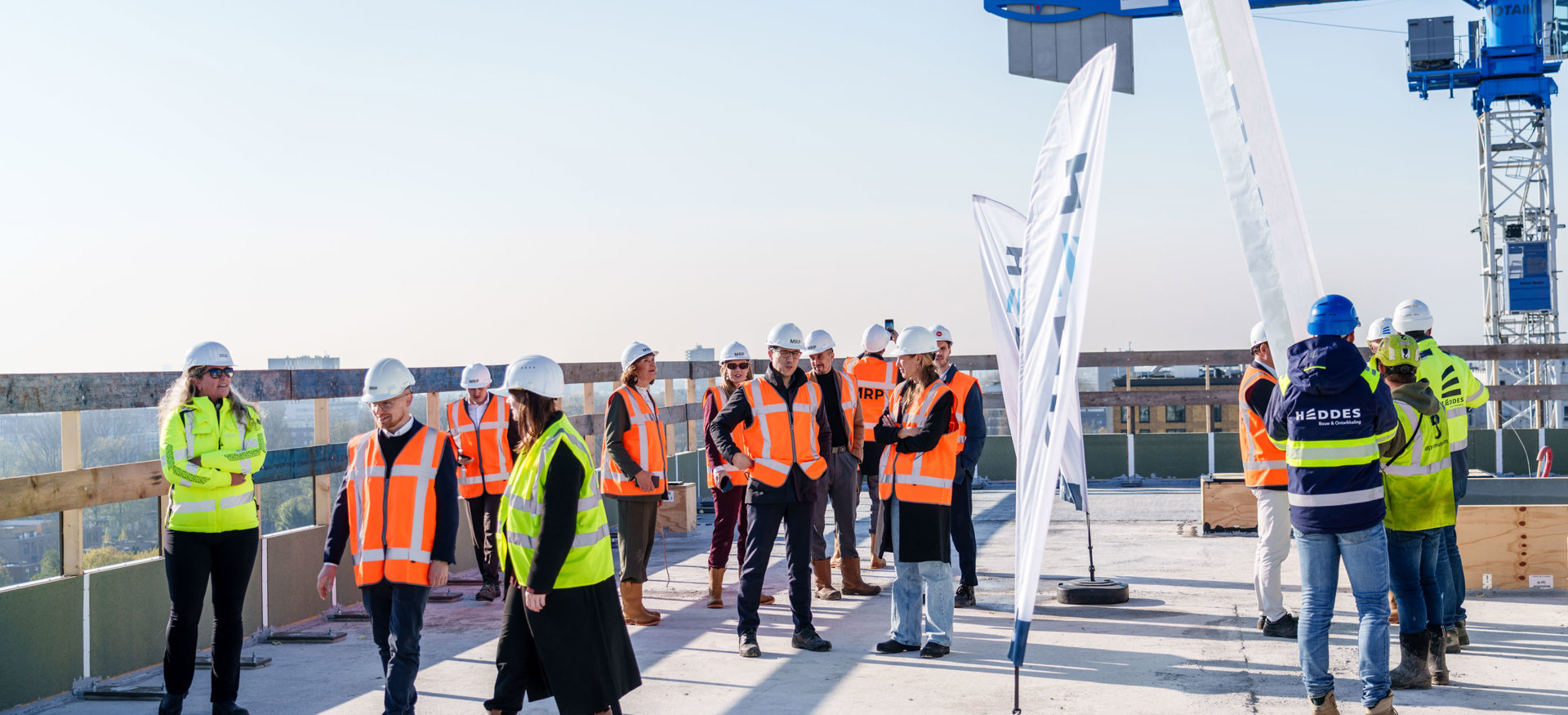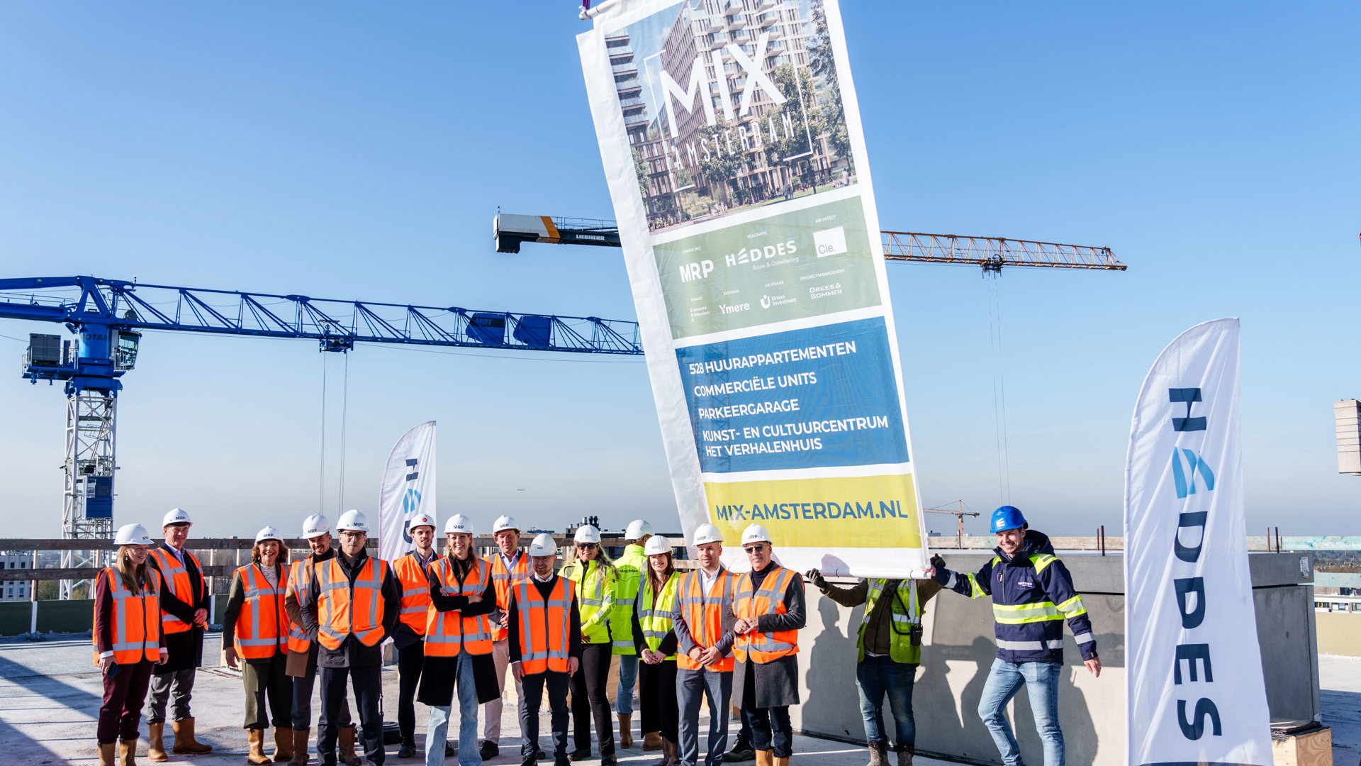 Op dinsdag 5 november is het hoogste punt van het eerste gebouw in MIX Amsterdam bereikt. Met genodigden en bouwpersoneel is feestelijk stilgestaan bij deze mijlpaal. In aanwezigheid van Nabila Bouabbouz (Projektdirecteur Gebiedontwikkeling Gemeente Amsterdam), Bart Meijer (CEO MRP), Ofer Gilboa (CEO MRP Investment) Niels Doodeman (Algemeen directeur Heddes Bouw & Ontwikkeling), Gerard van Arum (Ontwikkelaar Ymere), Friedrich Georg Warmbold (Head of IM Residential Union Investment), Roelien de Haas (Drees en Sommer Netherlands) en genodigden werd de MIX Amsterdam vlag boven het gebouw van Union Investment symbolisch gehesen. De medewerkers van de bouw werden in de tussentijd getrakteerd op een verantwoorde snack bij foodtruck Hieper de Pieper.