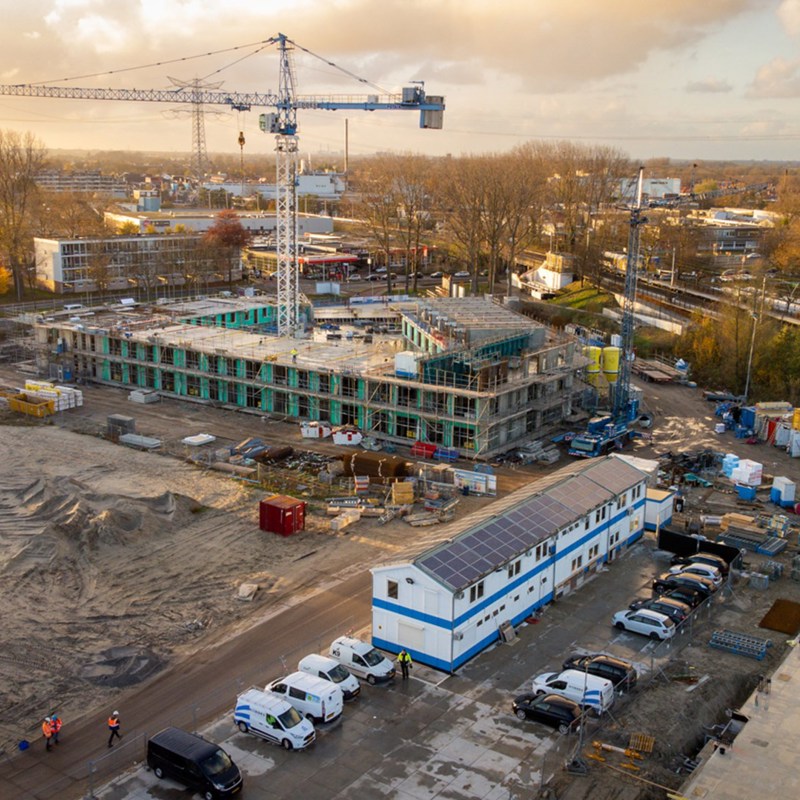 Eens was de bouwkeet een tochtige schottenkeet met modder op de vloer. Inmiddels is het deze ‘huiskamer van de bouwplaats’ een moderne werkplek waar energiebesparing centraal staat.