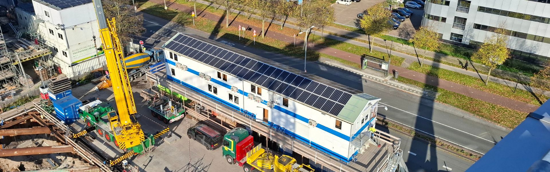 We nemen je even mee terug naar 2 jaar geleden. In 2022 experimenteerde Heddes met ruim 100 hergebruikte PV-panelen op de keet van project Oostzijderpark in Zaandam. De panelen waren afkomstig van een gesloopte school en werden door onze collega’s als kans gezien om op de bouwplaats zonne-energie te benutten. De pilot was succesvol!  Nu, twee jaar later, zijn PV-panelen op de keet de standaard geworden. Ze worden geleverd op stalen frames die precies passen op het dak van onze keet en zijn hiermee onderdeel van de basisinrichting van de bouwplaats geworden.