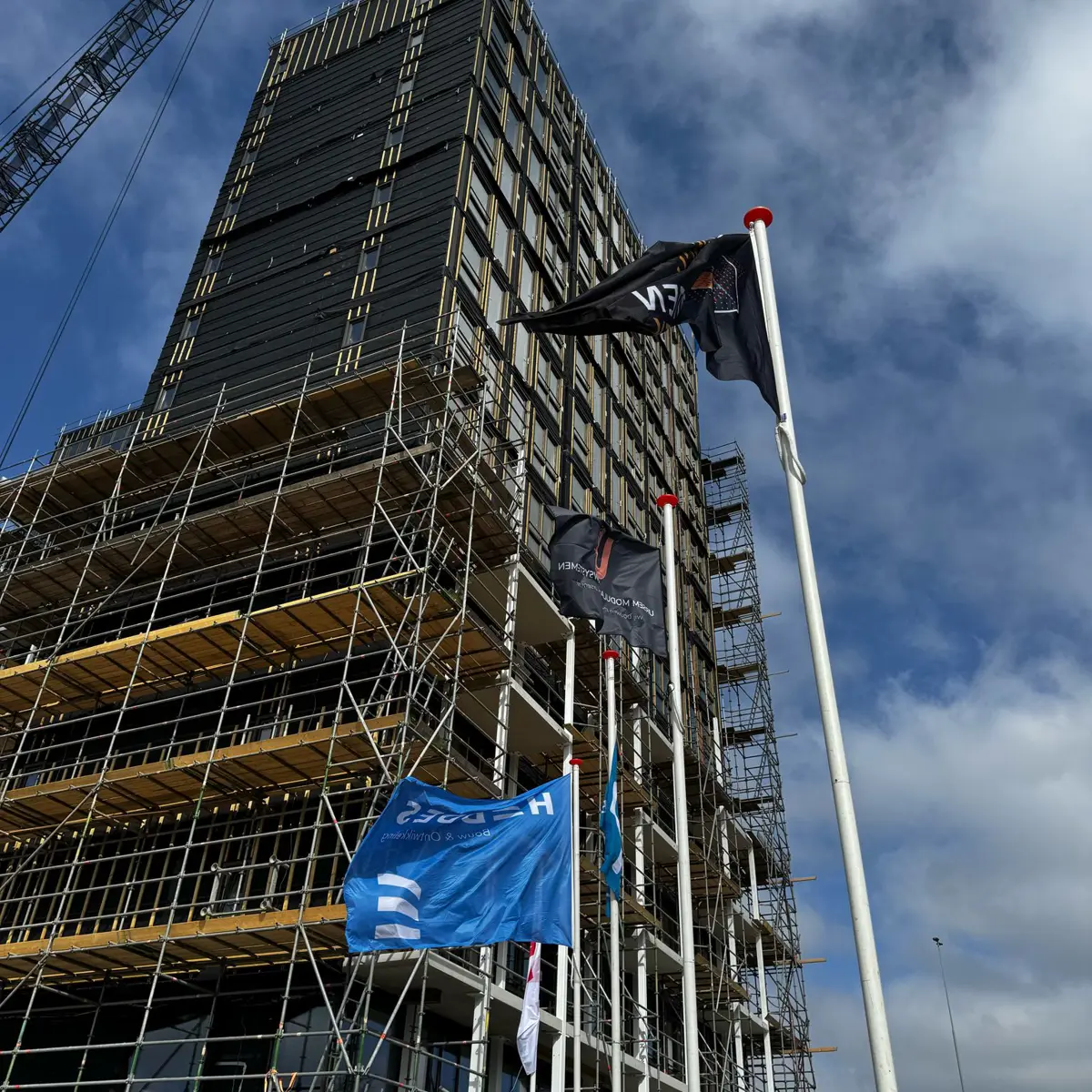 Het team ligt op koers en bouwt na het hoog(s)tepunt van vandaag onverstoord verder, de pijlen zijn gericht op de oplevering van dit mooie project, in september van dit jaar.