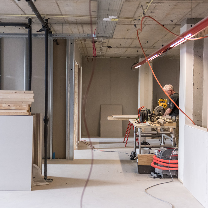 Het Kleinbouw team dat werkt in de Dijklander ziekenhuizen is een vast team van eigen mensen wat bestaat uit 5 à 6 personen. De timmerlieden zijn allround omdat zij alles moeten kunnen doen, en bovenal ook zelfstandig. De werkzaamheden die zij uitvoeren zijn bijvoorbeeld oude poli’s strippen en hier een nieuwe invulling aan geven. Dat op zich is al zeer divers en voor iedere poli anders. Maar ook operatiekamers, kantoren, röntgenruimtes, het IVF-laboratorium en de grote hal zijn onder handen genomen. Eigenlijk werkt het team aan alles van je in de medische zorg tegen kunt komen. Van de keuken tot de gipskamer en van de röntgenruimte tot de psychiatrieafdeling.