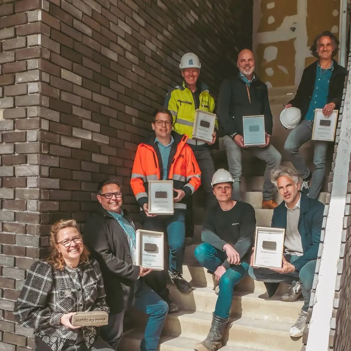 Maar liefst 173.020 kilo afval krijgt een waardevolle nieuwe bestemming. Een resultaat om trots op te zijn! Daarom kregen wij in april 2022 de UPPY uitgereikt, voor onze bijdrage aan een duurzamere bouw.